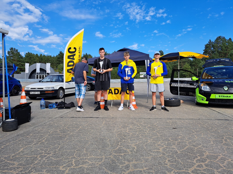 Trüb schien der Sonntag zu werden, als man sich in der Früh am 20. August auf den Weg in die Schorfheide machte, um auf dem Driving Center erneut nach den großen Pokalen zu greifen. Der 5. und 6. Lauf, in der Berlin-Brandenburg-Meisterschaft im Youngster Cup des ADAC, standen an. Der MSC Groß Dölln hatte eingeladen und einen riesen Parcours gestellt. Vormittags konnten die Heranwachsenden noch ordentlich mit den Wettkampffahrzeugen trainieren und am Nachmittag dann, bei nunmehr bestem Sonnenschein und übertrieben Temperaturen, ging es los. Schon in den Trainingsrunden konnte man die zwei Aufgaben erkennen, welche am Ende das Zünglein an der Waage sein werden. Ja an diesen Aufgaben entschied sich, wer das bessere Gefühl für diesen schnellen Parcours sich im Training erarbeitet hatte. Der Renntag gestaltete sich nicht unerwartet zu Gunsten der Seelower Fahrer, sie alle lieferten nur fehlerfreie Läufe ab. Am Ende des Tages konnte Alexander Zweig zwei dritte Plätze in der Y1 einfahren. Der Sieg in dieser Klasse ging gleich zweimal, ans Brüderchen Maximiliam Zweig. In der Y 2 startete Kai Zimmermann für den MC Seelow und wer dachte es sich schon, er erfuhr sich in beiden Rennen den ersten Platz. Ja die Konkurrenz war an diesem sehr heißen und vor allem trockenen Sonntag nicht sehr groß. Einige der sonstigen Starter waren auch noch in den Ferien und hatten andere Highlights geplant. So richtig groß war das Starterfeld schon von Anbeginn in diesem Jahr nicht. Aber der Eine oder die anderen Nachwuchsfahrer hatten schon mal vorbeigeschaut und sind Probe gefahren. Wir können schon mal sagen, Mädels und Jungs zieht euch warm an, da kommt Konkurrenz ins Haus. In diesem Sinne macht weiter so, trainiert und kämpft mit uns, für solch tolle Erfolge.